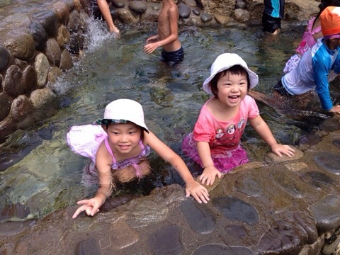 清水坂公園は立体的な地形を活かして、水が流れ続ける楽しいジャブジャブ池が沢山あります。
