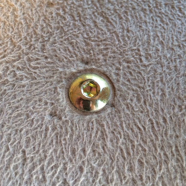 キャットタワーは六角ナットで止まっていることが多いので、キャップを外して、ボルトのヘッドを見てみます。