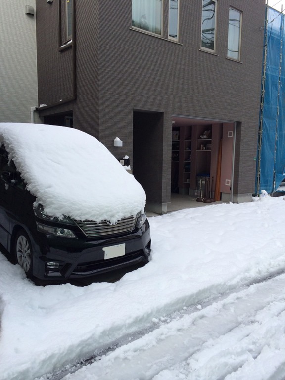 やるぞー!っと気合を入れ、スコップ一個で道路とガレージ前の土間打ち部分を雪かきしました。