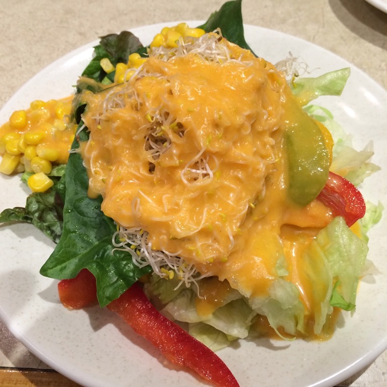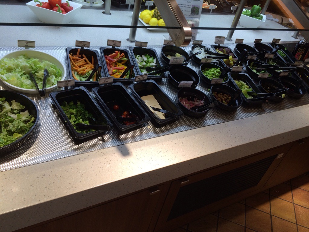 サラダバーだけで、カレーやパスタ、パンなどの主食や、アイスやフルーツなどのデザートまでしっかり食べ放題なので十分な種類と量があります。