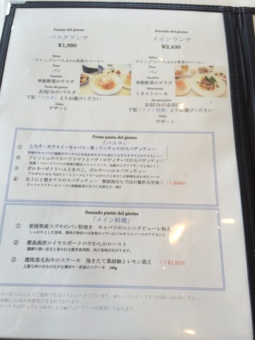 ランチは、パスタランチ、メインランチ、アルボルトコースランチの3種類があります。
